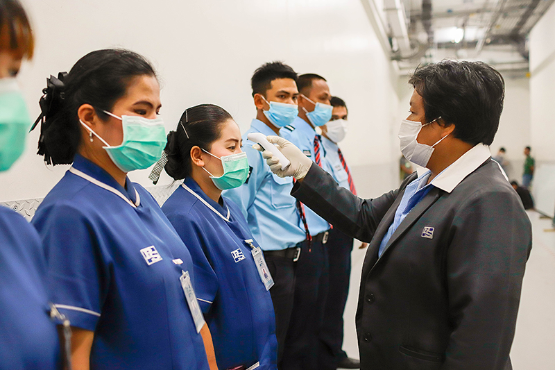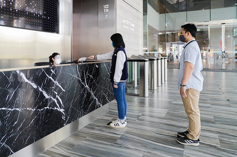 19. ผู้มาติดต่อทุกคนต้องผ่านการตรวจวัดอุณหภูมิก่อนเข้าอาคาร