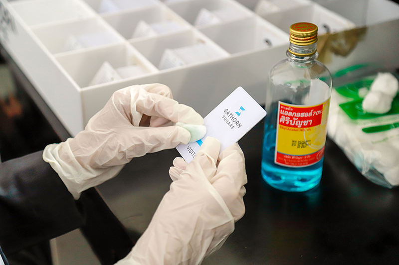 3. เจ้าหน้าที่ที่ทำงานใกล้ชิดกับผู้ใช้อาคารต้องมีอุปกรณ์ป้องกันส่วนบุคคลเพิ่มเติม เช่น ถุงมือ หรือ Face shield