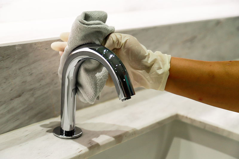 5. ทำความสะอาดจุดสัมผัสต่างๆ เช่น ราวจับประตู ราวจับบันไดเลื่อน ปุ่มกดลิฟต์ เป็นต้น
