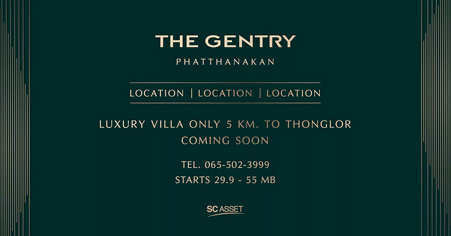 เตรียมพบการดีไซน์ใช้ชีวิตหรูใจกลางเมืองครั้งใหม่ เพียง 5 กม. ถึงทองหล่อ "เดอะ เจนทริ พัฒนาการ (The Gentry Pattanakarn)" วิลล่าหรู 3 ชั้น จากเอสซี แอสเสท ปรับฟังก์ชันการใช้งานให้มากกว่าที่พักอาศัย เปลี่ยนวิธีคิดการออกแบบให้รับกับไลฟ์สไตล์คนเมือง พร้อมรวมทุกความต้องการสำหรับการใช้ชีวิตที่สมบูรณ์แบบไว้ในที่เดียว เอกสิทธิ์เพียง 34 ครอบครัว