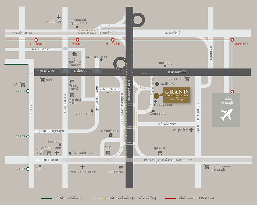 เสียงร้องเรียกแห่งชัยชนะที่ยิ่งใหญ่ ประสานรับในทุกอิริยาบทของความสำเร็จที่คุณเท่านั้นเป็นผู้กำหนด "แกรนด์ บางกอก บูเลอวาร์ด บางนา-อ่อนนุช (Grand Bangkok Boulevard Bangna - Onnut)" คฤหาสน์หรูดีไซน์ใหม่จาก SC Asset ภายใต้แรงบันดาลใจการออกแบบเอกลักษณ์จากสถาปัตยกรรมแห่งกรุง เบอลิน ประเทศเยอรมนี พร้อมที่สุดของระบบความปลอดภัย และความเป็นส่วนตัว เพื่อให้ที่นี่ได้มอบความสำเร็จ ให้เป็นของคุณในทุกวัน