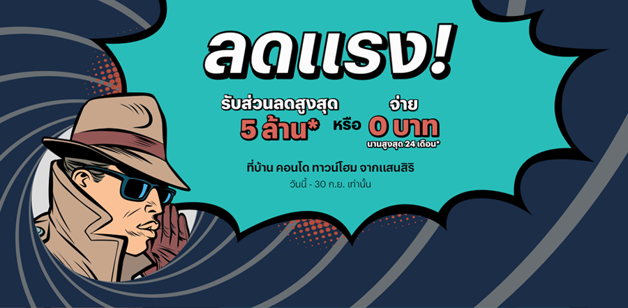 ลดภาระ ลดเป็นล้าน รับส่วนลดสูงสุด 5 ล้าน* หรือ จ่าย 0 บาท ที่บ้าน คอนโด ทาวน์โฮม จากแสนสิริ วันนี้ - 30 กันยายน 2563 นี้ เท่านั้น