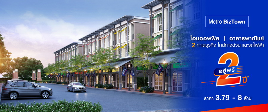Metro Biz Town โฮมออฟฟิศ | อาคารพาณิชย์ 2 ทำเลธุรกิจ ใกล้ทางด่วน และรถไฟฟ้า อยู่ฟรี 2 ปี ราคา 3.79 - 8 ล้านบาท