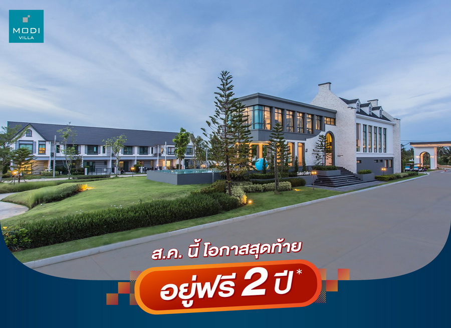 Modi Villa สิงหาคมนี้ โอกาสสุดท้าย อยู่ฟรี 2 ปี สัมผัสไลฟ์สไตล์ใหม่แห่งการใช้ชีวิต ทาวน์โฮม และบ้านแนวคิดใหม่ พร้อมคลับเฮ้าส์ที่เหนือกว่า เริ่ม 1.89 - 5 ล้าน