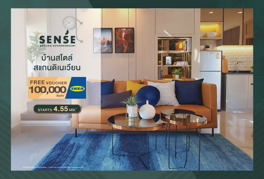 บ้านแนวคิดใหม่ เซนส์ บางนา - สุวรรณภูมิ บ้านสไตล์สแกนดิเนเวียน ตั้งอยู่ใน ซ. กิ่งแก้ว 29 ฟรี!! Voucher IKEA 100,000 บาท* เริ่ม 4.55 ล้านบาท*