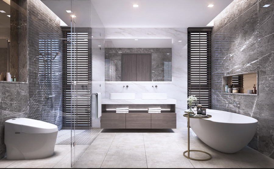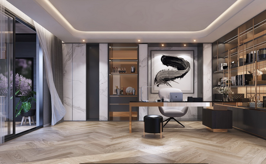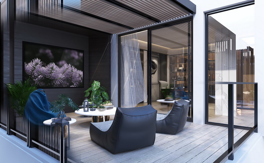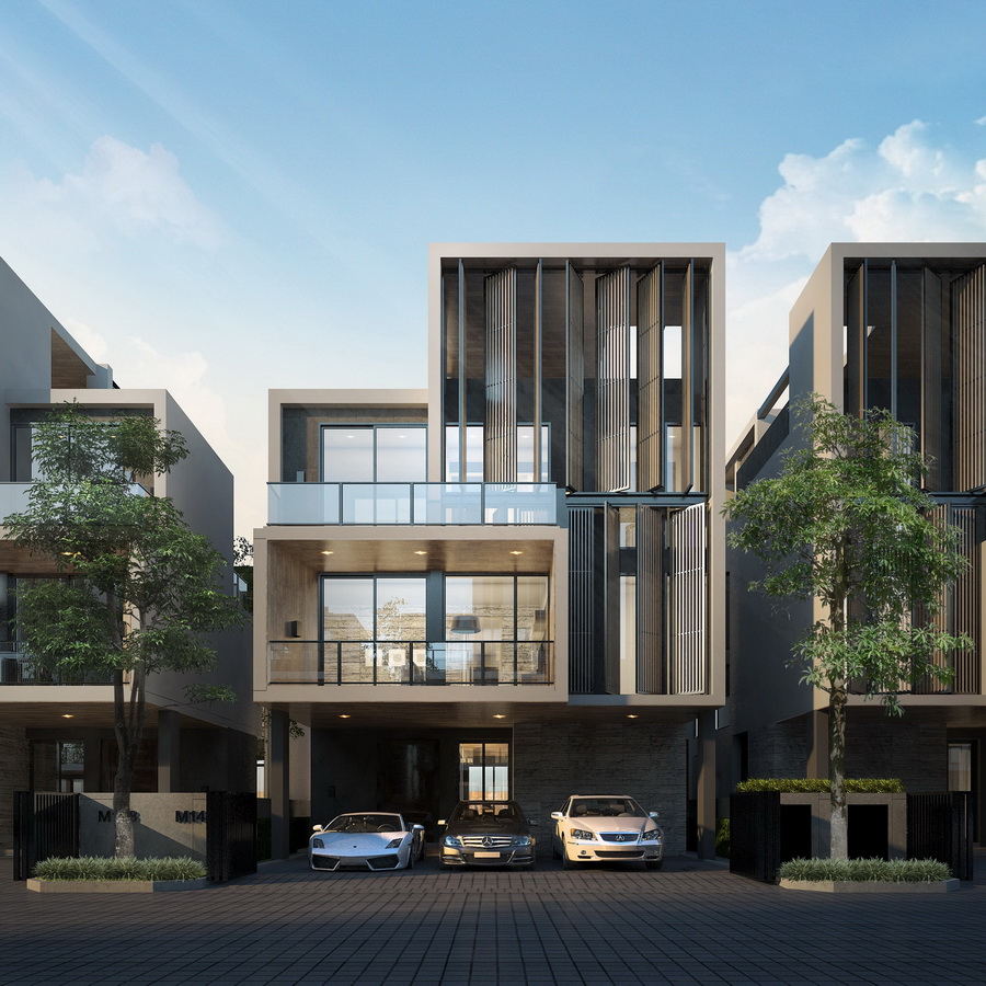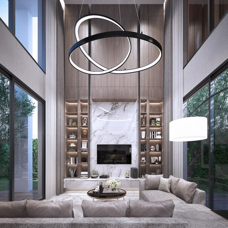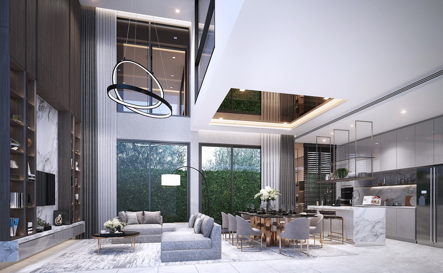 ในส่วนของตัวบ้านมีการตกแต่งสไตล์ Modern Luxury มาพร้อมกับการเลือกสรรวัสดุจากแบรนด์ชั้นนำระดับโลก ตั้งแต่การใช้กระเบื้องนำเข้าจากประเทศสเปนและสุขภัณฑ์ของ Villaroy & Boch จากประเทศเยอรมนี รวมถึงเครื่องใช้ไฟฟ้าในครัวเป็นแบรนด์ Smeg และลิฟต์ของ Aritco (ระบบสกรู) จากประเทศสวีเดน ที่มีความปลอดภัยสูง ขณะเดียวกัน มีการออกแบบฟังก์ชันบ้านที่ตอบโจทย์การอยู่อาศัยอย่างแท้จริง เพราะครบครันทั้งส่วน Living และ Dining Room โดยมีครัวฝรั่งและครัวไทย ตลอดจนห้องแม่บ้าน พร้อมห้องน้ำแยกส่วนและห้องอเนกประสงค์ ซึ่งนอกจากจะมีพื้นที่สวนในชั้น 1 ซึ่งเป็น Courtyard อยู่กลางบ้านแล้ว ยังมีการเพิ่มพื้นที่สีเขียวบนชั้น 3 ให้ด้วย เพื่อสร้างความร่มรื่นและให้ผู้อยู่อาศัยได้ใกล้ชิดธรรมชาติมากขึ้น โดยสวนบริเวณชั้น 1 สามารถปรับเปลี่ยนให้เป็นสระว่ายน้ำขนาดเล็กหรือจากุชชี่แทนได้