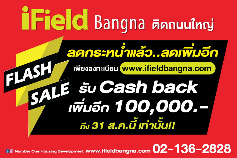 การันตีราคาถูกที่สุดในย่านบางนา!! มาพร้อม 3 ห้องนอนขนาดใหญ่ ห้องรับแขกชั้นล่าง และมุมพักผ่อนชั้นบนเพื่อความเป็นส่วนตัวของทุกคนในครอบครัว ที่จอดรถ 2 คัน พร้อมคลับเฮ้าส์หรูและสวนสวยกระจายตัวทั่วโครงการ พิเศษ!! ลงทะเบียนถึง 31 สิงหาคมนี้ เท่านั้น ที่ www.ifieldbangna.com รับแคชแบคเพิ่มอีก 100,000 บาท สำหรับผู้ที่สนใจสามารถเข้าเยี่ยมชมบ้านตัวอย่างที่โครงการไอฟีล บางนา
