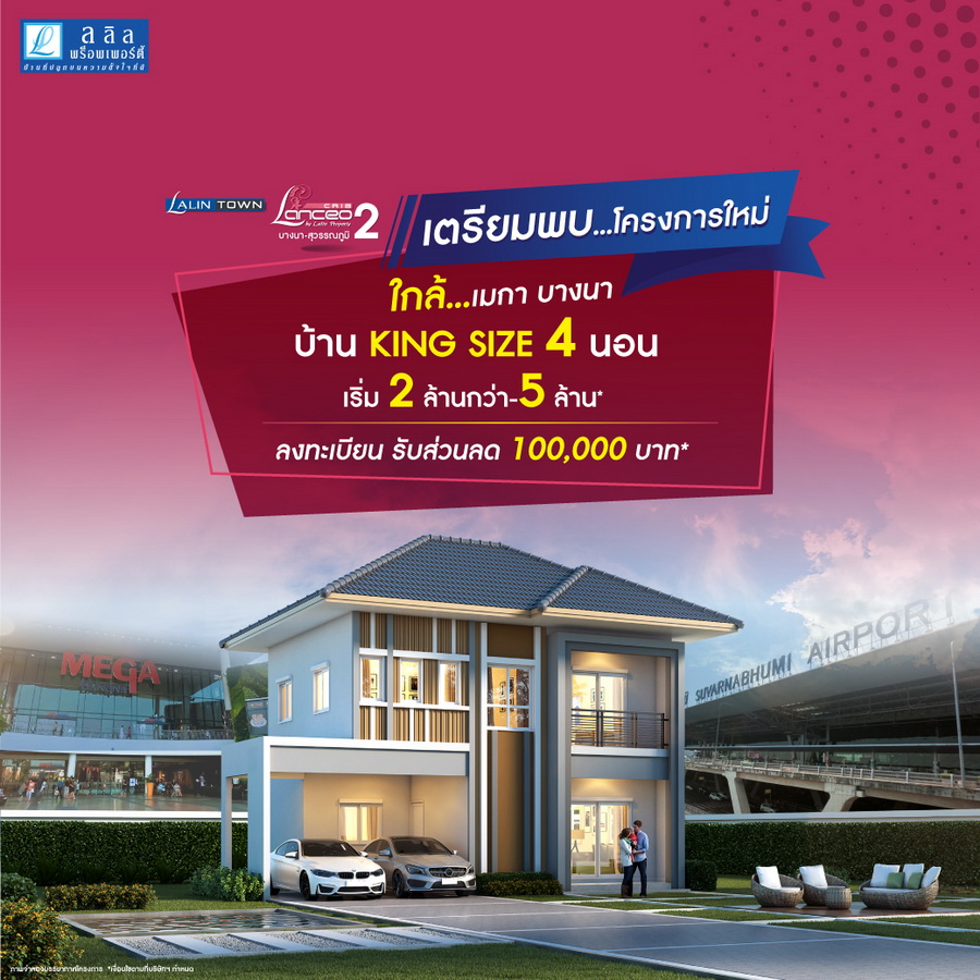 บริษัท ลลิล พร็อพเพอร์ตี้ จำกัด (มหาชน) เตรียมเปิดตัวโครงการใหม่ "ลลิลทาวน์ แลนซีโอ คริป 2 บางนา-สุวรรณภูมิ" บ้าน King Size ดีไซน์ใหม่ล่าสุดสไตล์ฝรั่งเศส 4 ห้องนอน 3 ห้องน้ำ บนทำเลน่าอยู่ของบางนา-ตราด ใกล้ Mega บางนา, สุวรรณภูมิ "ครั้งแรก" กับบ้านหลังใหญ่ ที่ลงตัวกับทุกไลฟ์สไตล์ยุค New Normal พื้นที่ใช้สอยขนาดใหญ่ ปรับฟังก์ชั่นให้ลงตัวได้กับทุกการใช้งาน พร้อมคลับเฮาส์ และฟิตเนสริมสวนรับวิวพาโนราม่า