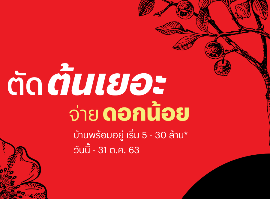 แสนสิริ ตัดต้นเยอะ จ่ายดอกน้อย บ้านพร้อมอยู่ เพราะแสนสิริช่วยจ่ายดอก ให้คุณผ่อนเท่าเดิม แต่หมดไวขึ้น! ผ่อนสบายๆ ไม่ต้องกังวลเรื่องดอกเบี้ย บ้านพร้อมอยู่ เริ่ม 5 - 30 ล้านบาท* วันนี้ - 31 ตุลาคม 63