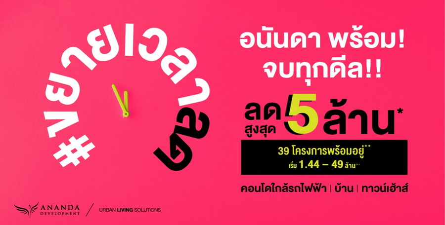 #ขยายเวลาลด อนันดา พร้อม จบทุกดีล ลดสูงสุด 5 ล้านบาท* 39 โครงการพร้อมอยู่* คอนโดใกล้รถไฟฟ้า บ้าน ทาวน์โฮม เริ่ม 1.44 - 49 ล้านบาท*