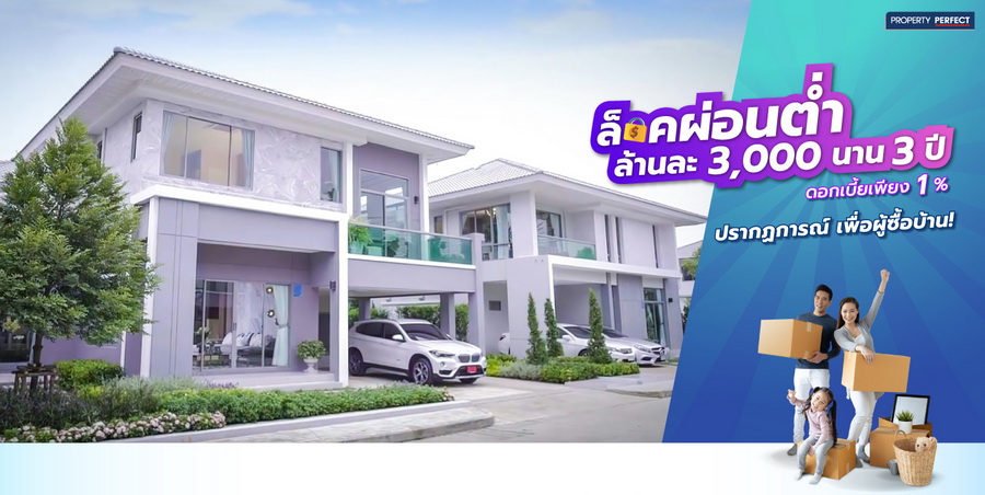 ล็อคผ่อนต่ำ ล้านละ 3,000 นาน 3 ปี ดอกเบี้ยเพียง 1% ปรากฏการณ์ เพื่อผู้ซื้อบ้าน!จาก พร็อพเพอร์ตี้ เพอร์เฟค ผ่อนต่ำ ดอกเบี้ยต่ำ ลดภาระค่าใช้จ่ายในการเป็นเจ้าของบ้าน และทาวน์โฮม ภายในตุลาคม 2563 นี้