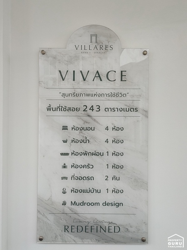 4.Vivace (Type C): จำนวน 24 ยูนิต พื้นที่ใช้สอยเริ่มต้น 61.3 ตารางวา 243 ตารางเมตร ขนาด 4 ห้องนอน 4 ห้องน้ำ 1 ห้องพักผ่อน 1 ห้องครัว 1 ห้องแม่บ้าน ที่จอดรถ 2 คัน