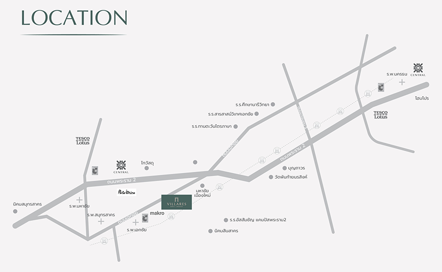 แผนที่โครงการวิลลาเรส พระราม 2 - เอกชัย