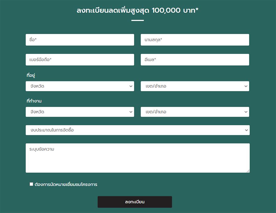 ลงทะเบียนเยี่ยมชมโครงการรับทันทีส่วนลด 100,00 บาท