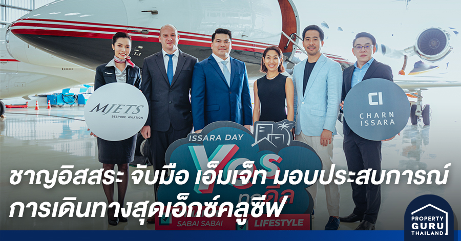 บมจ. ชาญอิสสระ ดีเวล็อปเมนท์ นำโดย นายดิฐวัฒน์ อิสสระ (ที่สองจากขวา) ผู้ช่วยกรรมการผู้จัดการ สายงานสร้างสรรค์สื่อและเทคโนโลยี สารสนเทศ, นางสาวกรัชเพชร อิสสระ (ที่สามจากขวา) ที่ปรึกษาด้านการตลาด และนายกฤต หงส์จรรยา (ขวาสุด) ผู้ช่วยกรรมการผู้จัดการ สายงานการขายและการตลาด ร่วมกับ บริษัท เอ็มเจ็ท จำกัด โดย นายณัฏฐภัทร สีบุญเรือง (ที่สามจากซ้าย) ประธานเจ้าหน้าที่บริหาร และ นายฟิลิปป์ เลเซ่น ประธานเจ้าหน้าที่ฝ่ายพานิชย์ จับมือกันร่วมมอบข้อเสนอสุดพิเศษกับประสบการณ์การเดินทางท่องเที่ยวสุดเอ็กซ์คลูซีฟบนเครื่องบินส่วนตัวแบบเหนือระดับ