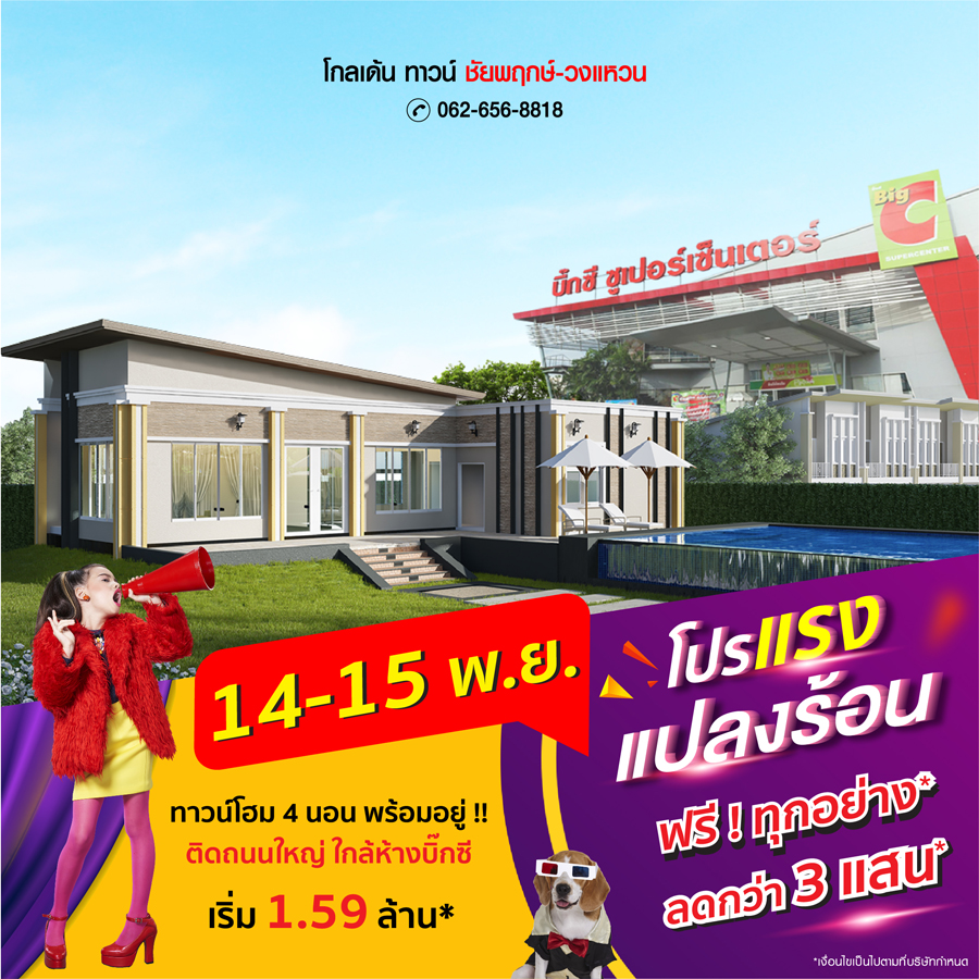 Promotion : 14-15 พ.ย. นี้ โปรแรง แปลงร้อน เปิดโซนส่วนตัว โปรสุดฟิน ฟรี! ทุกค่าใช้จ่าย* พลาดไม่ได้แล้ว กับราคาสุดพิเศษ!! เริ่มเพียง 1.99 ล้าน* ทาวน์โฮม 4 ห้องนอน 3 ห้องน้ำ ฟังก์ชันครบครัน ตอบโจทย์ทุกไลฟ์สไตล์ ทำเลคุณภาพใกล้รถไฟฟ้า + เดอะมอลล์ พร้อมสโมสร + โรงหนังส่วนตัว*