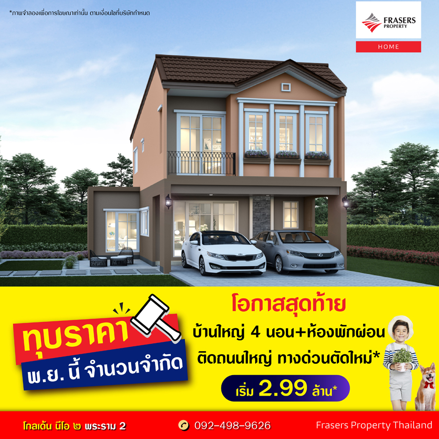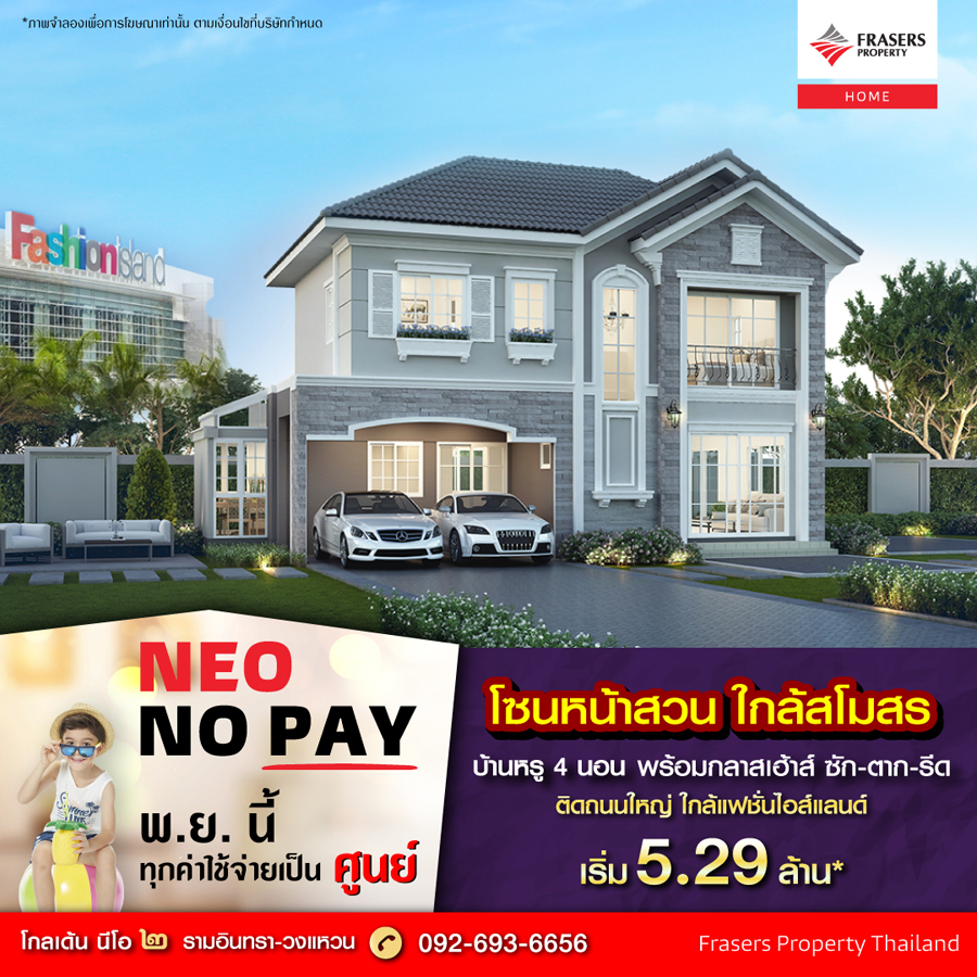 Promotion : พ.ย. นี้ ทุกค่าใช้จ่ายเป็น ศูนย์ NEO NO PAY โซนหน้าสวน ใกล้สโมสร ยกระดับคุณภาพชีวิตกับสังคมเมือง สวย ครบ คุ้ม ที่ โกลเด้น นีโอ ๒ รามอินทรา - วงแหวน เริ่ม 5.29 ล้าน* บ้านหรู หลังใหญ่ สไตล์อังกฤษ 4 ห้องนอน ฟังก์ชั่นครบครัน พร้อม Glass House ซัก - ตาก - รีด ทำเลทอง เดินทางสะดวก ติดถนนใหญ่ ใกล้แฟชั่นไอส์แลนด์