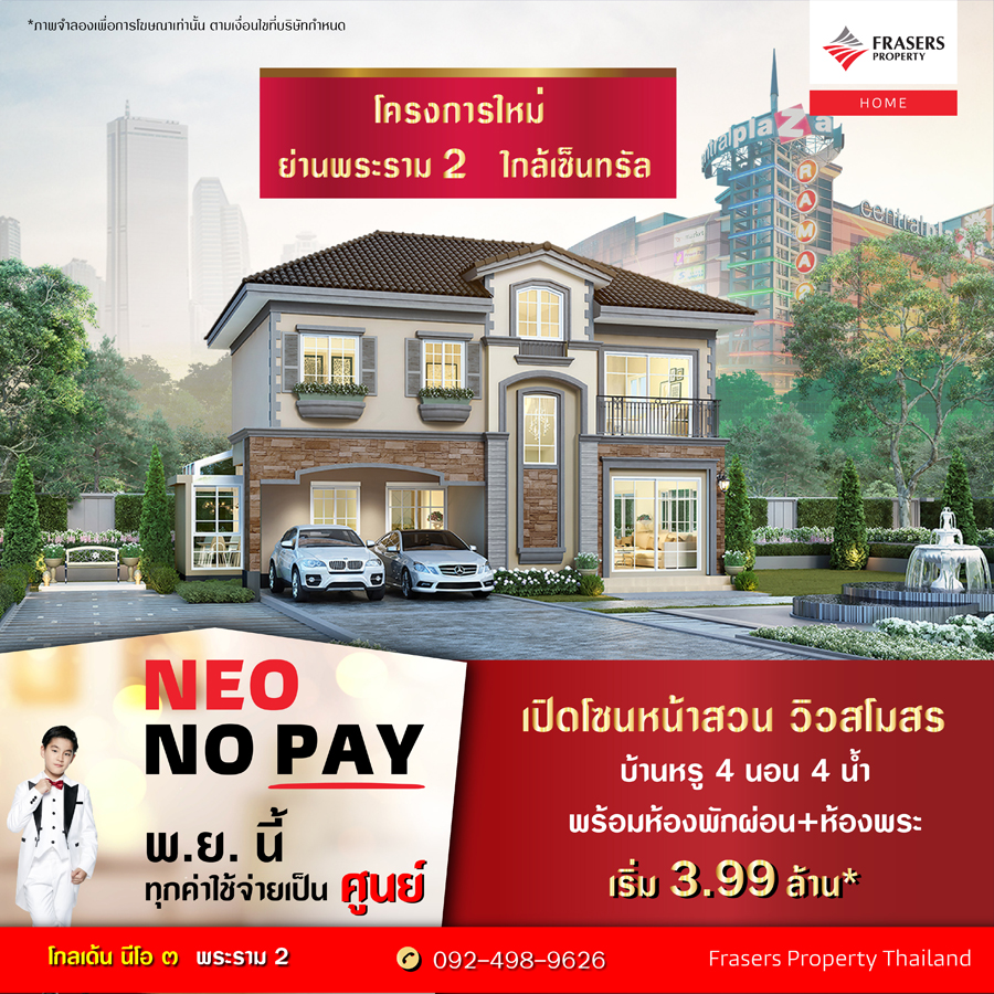 Promotion : NEO NO PAY 1-30 พ.ย. นี้ ทุกค่าใช้จ่ายเป็น ศูนย์ โครงการใหม่ ย่านพระรามสอง เปิดโซนหน้าสวน วิวสโมสร บ้านหรู หลังใหญ่ สไตล์อิตาลีฟังก์ชั่นครบ 4 ห้องนอน 4 ห้องน้ำ พร้อมห้องพักผ่อน + ห้องพระ ทำเลสุดฮอต ติดถนนใหญ่ ใกล้เซ็นทรัล+ทางด่วน เริ่มเพียง 3.99 ลบ.*