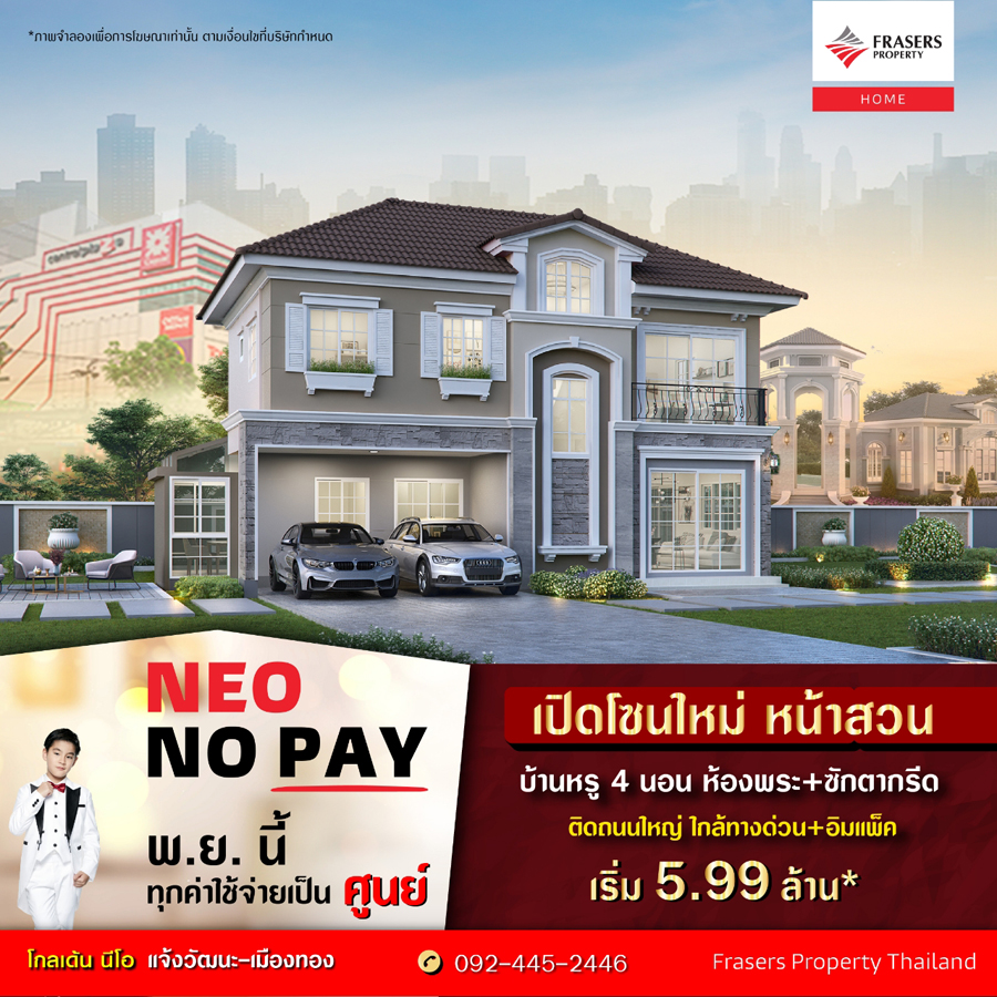 Promotion : พ.ย. นี้ ห้ามพลาด ทุกค่าใช้จ่ายเป็น ศูนย์ NEO NO PAY เปิดโซนใหม่ หน้าสวนสวย บ้านหรู 4 ห้องนอน 4 ห้องน้ำ พร้อมห้องพระ + ซักตากรีด สุดยอดทำเลทอง ติดถนนใหญ่ ใกล้ทางด่วน+อิมแพ็ค เริ่ม 5.99 ล้าน*