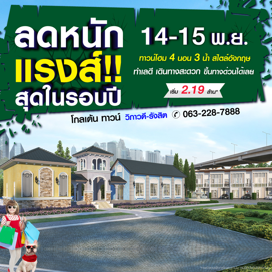 Promotion : 14-15 พ.ย. นี้ ลดหนัก แรงส์ สุดในรอบปี สุดปัง อลังการไม่มีแผ่ว ทาวน์โฮมหรู สไตล์อังกฤษ ขนาด 4 ห้องนอน 2 ที่จอดรถ พร้อมห้องพระ+ครัวไทย* อลังการสโมสร + โรงหนังส่วนตัว เดินทางสะดวก ติดถนนใหญ่ + ใกล้แฟชั่น เริ่ม 2.79 ล้าน*