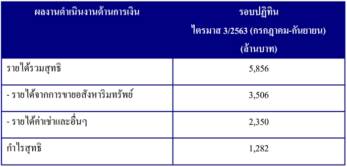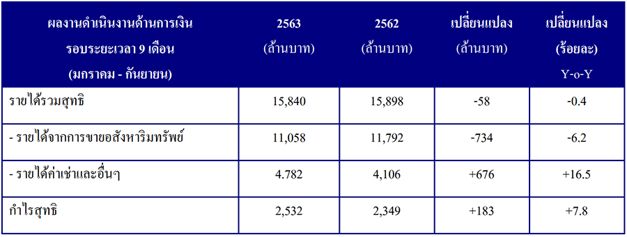 ผลงานดำเนินงานด้านการเงิน รอบระยะเวลา 9 เดือน (มกราคม - กันยายน)