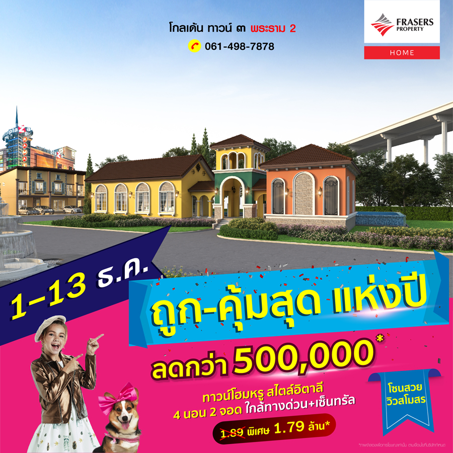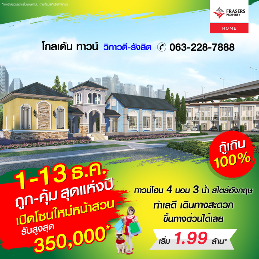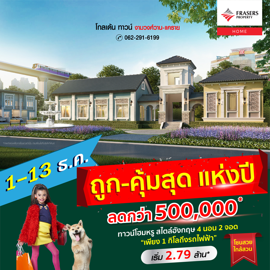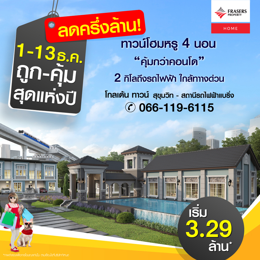 Promotion : 1-13 ธ.ค.นี้ ถูก! - คุ้ม! ที่สุดแห่งปี ลดจัดหนักกว่า ครึ่งล้าน คุ้มมาก ทาวน์โฮมหรู สไตล์อังกฤษ 4 ห้องนอน 2 จอดรถ "คุ้มกว่าคอนโด" 2 กิโล ถึงรถไฟฟ้า และใกล้ทางด่วน สโมสรสุดอลังการ ตอบโจทย์ทุกไลฟ์สไตล์ เริ่ม 3.29 ล้าน*