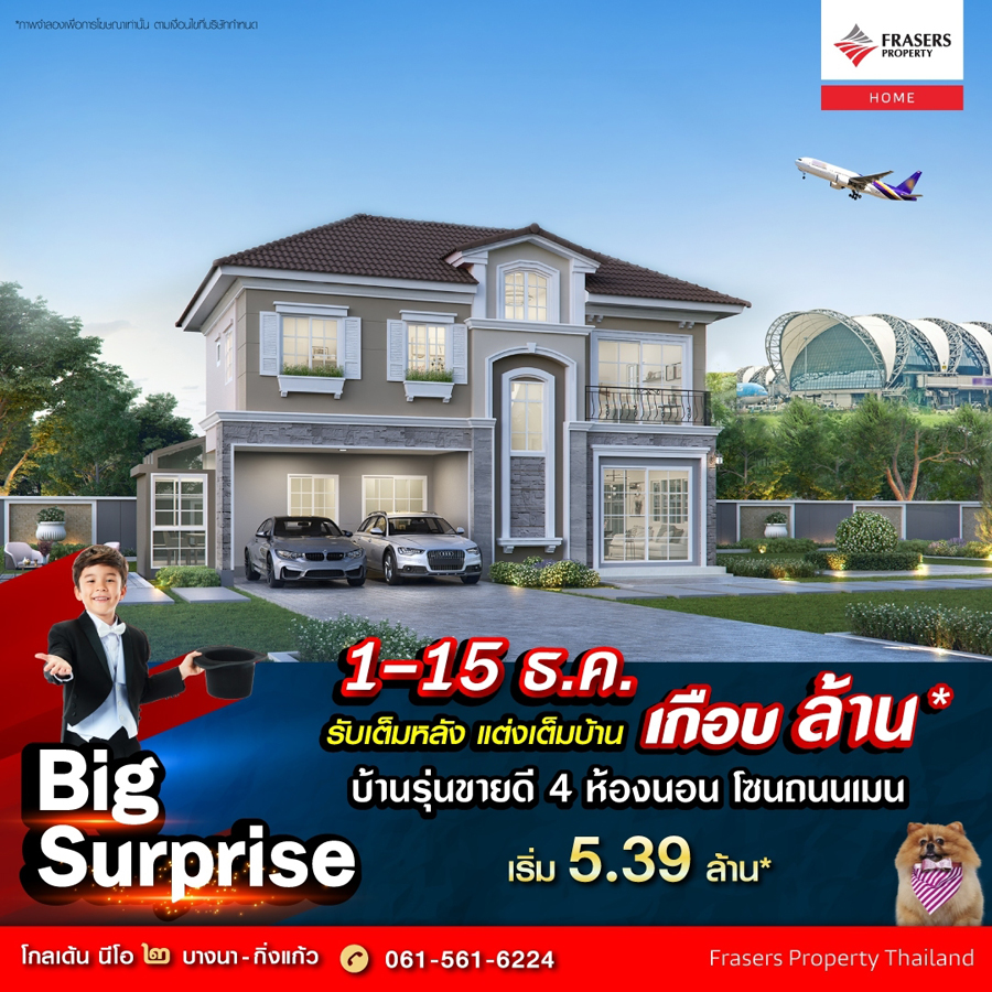 Promotion : 1-15 ธ.ค. นี้ Big Surprise ส่งท้ายปีเก่า ต้อนรับปีใหม่ จัดโปรยิ่งใหญ่ ลดสูงสุด เกือบ ล้าน* รับเต็มหลัง แต่งเต็มบ้าน บ้านรุ่นขายดี 4 นอน โซนถนนเมน ติดถนนใหญ่ ใกล้ทางด่วน เริ่ม 5.39 ล้าน* มากกว่าบ้านคือพื้นที่ของครอบครัว