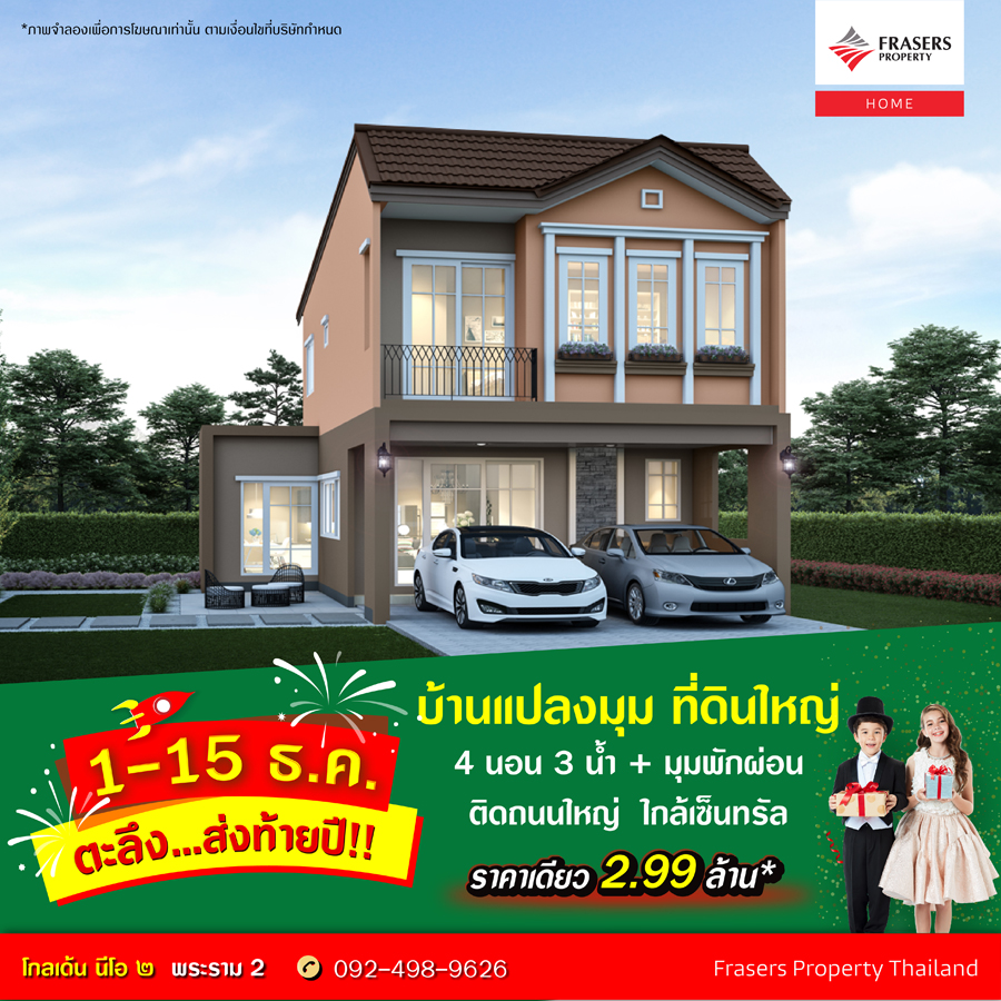 Promotion : 1-15 ธ.ค. นี้ จัดโปรยิ่งใหญ่ Big Surprise ส่งท้ายปีเก่า ต้อนรับปีใหม่ ลดสูงสุด เกือบ ล้าน* รับเต็มหลัง แต่งเต็มบ้าน โซนหน้าสวน ใกล้คลับเฮ้าส์ ยกระดับคุณภาพชีวิตกับสังคมเมือง สวย ครบ คุ้ม ที่โกลเด้น นีโอ ๒ รามอินทรา - วงแหวน เริ่ม 5.29 ล้าน* บ้านหรู หลังใหญ่ สไตล์อังกฤษ 4 ห้องนอน ฟังก์ชันครบครัน พร้อม Glass House ซัก - ตาก - รีด ทำเลทอง เดินทางสะดวก ติดถนนใหญ่ ใกล้แฟชั่นไอส์แลนด์
