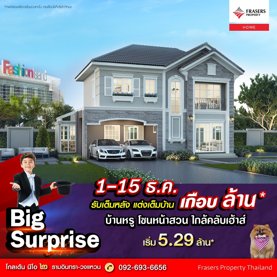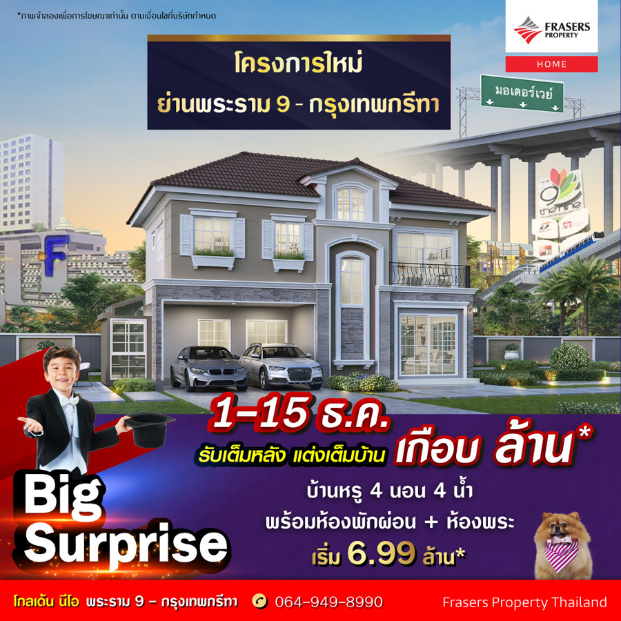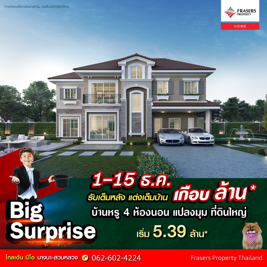 Promotion : Big Surprise 1-15 ธ.ค. นี้ รับเต็มหลัง แต่งเต็มบ้าน ลดสูงสุด เกือบ ล้าน* โครงการใหม่ ย่านกรุงเทพกรีฑา เปิดโซนสวน ดีไซน์ใหม่ บ้านหรู ฟังก์ชันครบ ใหญ่จุใจ 4 ห้องนอน 4 ห้องน้ำ พร้อมห้องพักผ่อน + ห้องพระ เริ่ม 6.99 ล้าน*