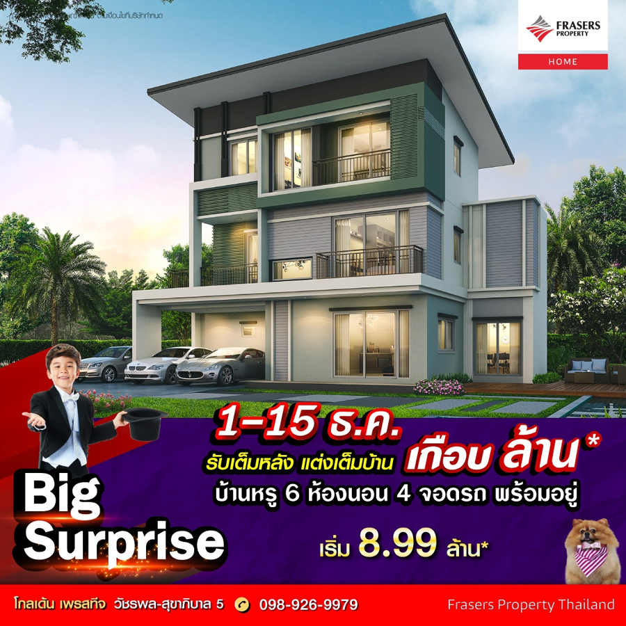 Promotion : 1-15 ธ.ค. นี้ Big Surprise โปรสุดปัง รับเต็มหลัง แต่งเต็มบ้าน เกือบ ล้าน* บ้านหรูพร้อมอยู่ 6 ห้องนอน 4 จอดรถ โครงการระดับพรีเมียม หรูที่สุดในย่าน บนทำเลศักยภาพ เดินทางสะดวก ติดถนนใหญ่ ใกล้ทางด่วนสุขาภิบาล 5 เริ่ม 8.99 ล้าน*