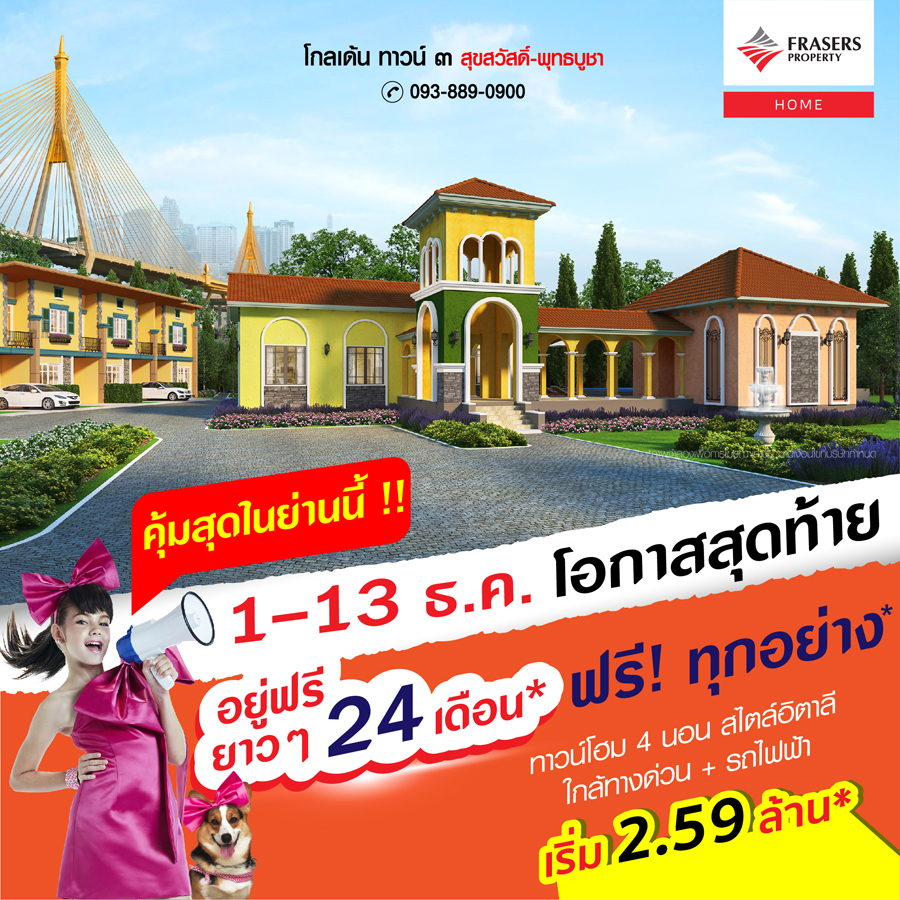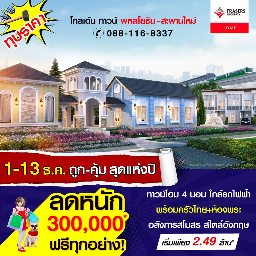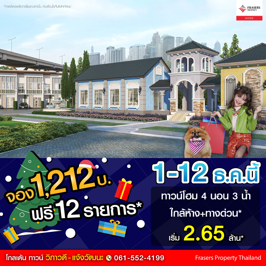 Promotion : 1-13 ธ.ค.นี้ ถูก! - คุ้ม! ที่สุดแห่งปี ห้ามพลาดลดจัดหนัก กว่า 300,000 พร้อมโปรสุดฟิน ฟรีทุกอย่าง* เริ่มเพียง 2.49 ล้าน* ทาวน์โฮมหรู 4 ห้องนอน 3 ห้องน้ำ ฟังก์ชันครบครัน พร้อมครัวไทย+ห้องพระ อลังการสโมสร สไตล์อังกฤษ เดินทางสะดวก ใกล้รถไฟฟ้า