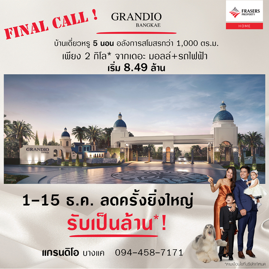 Promotion : Final Call 1-15 ธ.ค. นี้ ลดครั้งยิ่งใหญ่ รับเป็นล้าน เริ่ม 8 ล้าน* พบความโดดเด่นครั้งใหม่อย่างมีระดับ กับอาณาจักรบ้านเดี่ยวสุดหรู ย่านบางแค บ้านเดี่ยวหรู ตกแต่ง สไตล์อิตาลี 5 ห้องนอน ติด Main Street อลังการสโมสรกว่า 1,000 ตร.ม. ทำเลศักยภาพ เดินทางสะดวก เพียง 2 กิโล* จากเดอะมอลล์ + รถไฟฟ้า