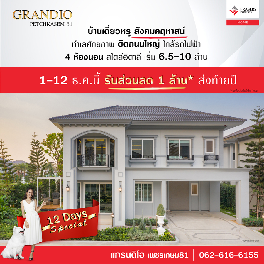 Promotion : 1-12 ธ.ค. นี้ 12 Day Special จัดเต็มส่งท้ายปี รบส่วนลด 1,000,000 บาท* บ้านเดี่ยวสุดหรู 4 นอน Private Zone ติดถนนเมน บนทำเลทองย่านธุรกิจ ใกล้รถไฟฟ้า เริ่ม 6.5-10 ล้าน* ในสังคมคุณภาพเพียง 107 ครอบครัว คลับเฮ้าส์ดีไซน์หรู พร้อมสวนสวยสไตล์อิตาลี