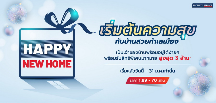 Happy New Home เริ่มต้นความสุขกับบ้านสวยทำเลเมือง เป็นเจ้าของบ้านพร้อมอยู่ได้ง่ายๆ พร้อมรับสิทธิพิเศษมากมาย สูงสุด 3 ล้านบาท* เริ่มวันนี้ - 31 มกราคม 2564 นี้เท่านั้น ราคา 1.89 - 70 ล้านบาท*