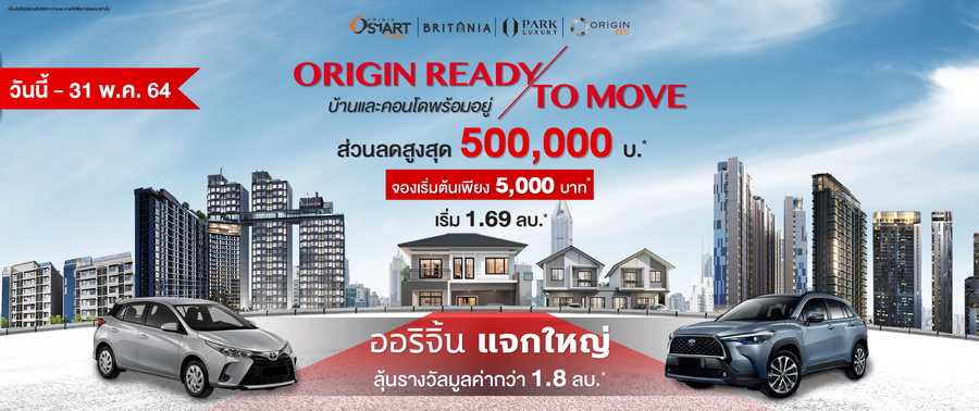 Origin Ready To Move บ้านและคอนโดพร้อมอยู่ ส่วนลดสูงสุด 500,000 บาท จองเพียง 5,000 บาท เริ่ม 1.69 ลบ. วันนี้ - 31 พฤษภาคม 2564!