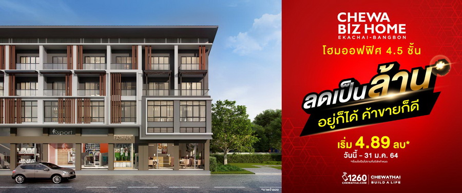 ชีวา บิซ โฮม เอกชัย-บางบอน โฮมออฟฟิศ 4.5 ชั้น ลดเป็นล้าน อยู่ก็ได้ ค้าขายก็ดี เริ่ม 4.89 ล้านบาท* วันนี้ - 31 มกราคม 2564 นี้เท่านั้น