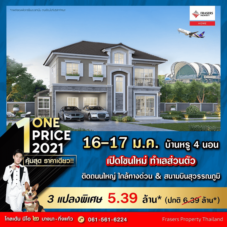 Promotion : ฉลองต้อนรับปีใหม่ 16 - 17 ม.ค. นี้ ONE PRICE 2021 #คุ้มที่สุด ราคาเดียว 3 แปลงพิเศษ บ้านหรู 4 นอน เปิดโซนใหม่ ทำเลส่วนตัว ติดถนนใหญ่ ใกล้ทางด่วน & สนามบินสุวรรณภูมิ เริ่ม 5.39 ล้าน* (ปกติ 6.39 ล้าน*) มากกว่าบ้านคือพื้นที่ของครอบครัว