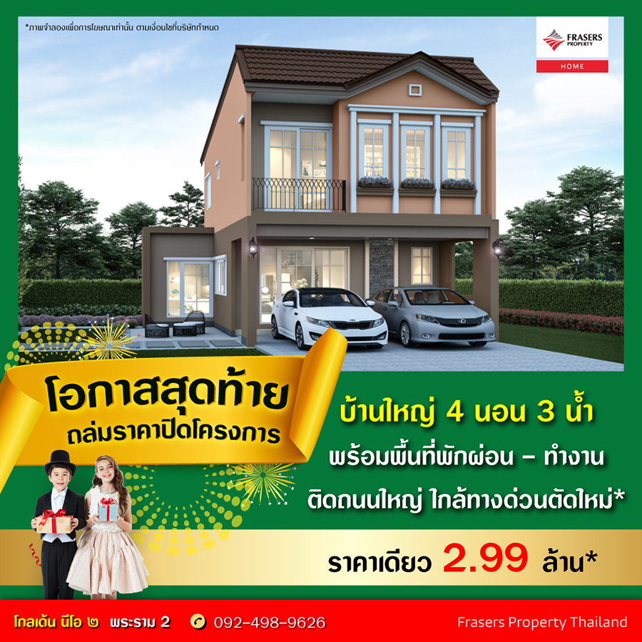 Promotion : 16 - 17 ม.ค. นี้ ฉลองต้อนรับปีใหม่ ONE PRICE 2021 คุ้มที่สุด ราคาเดียว 3 แปลงพิเศษ ปิดเฟสโซนสวน แปลงมุม ทำเลส่วนตัว ฟรีทุกค่าใช้จ่าย* เพียงเท่านั้นยังไม่พอ บ้านหรู หลังใหญ่ สไตล์อิตาลี ฟังก์ชั่นครบ 4 ห้องนอน 4 ห้องน้ำ พร้อมห้องพักผ่อน + ห้องพระ ทำเลสุดฮอต ติดถนนใหญ่ ใกล้ทางด่วนตัดใหม่* เริ่มเพียง 3.99 ลบ.*