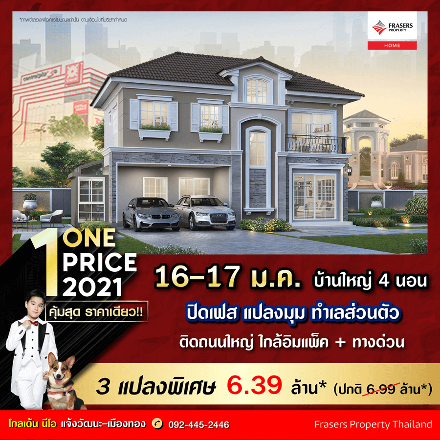 Promotion : 16 - 17 ม.ค. นี้ ฉลองต้อนรับปีใหม่ ONE PRICE 2021 #คุ้มที่สุด ราคาเดียว !! 3 แปลงพิเศษ ปิดเฟสแปลงมุม ทำเลส่วนตัว บ้านหรู 4 ห้องนอน 4 ห้องน้ำ พร้อมห้องพระ + ซักตากรีด สุดยอดทำเลทอง ติดถนนใหญ่ ใกล้อิมแพ็ค+ทางด่วน เริ่ม 6.39 ล้าน*