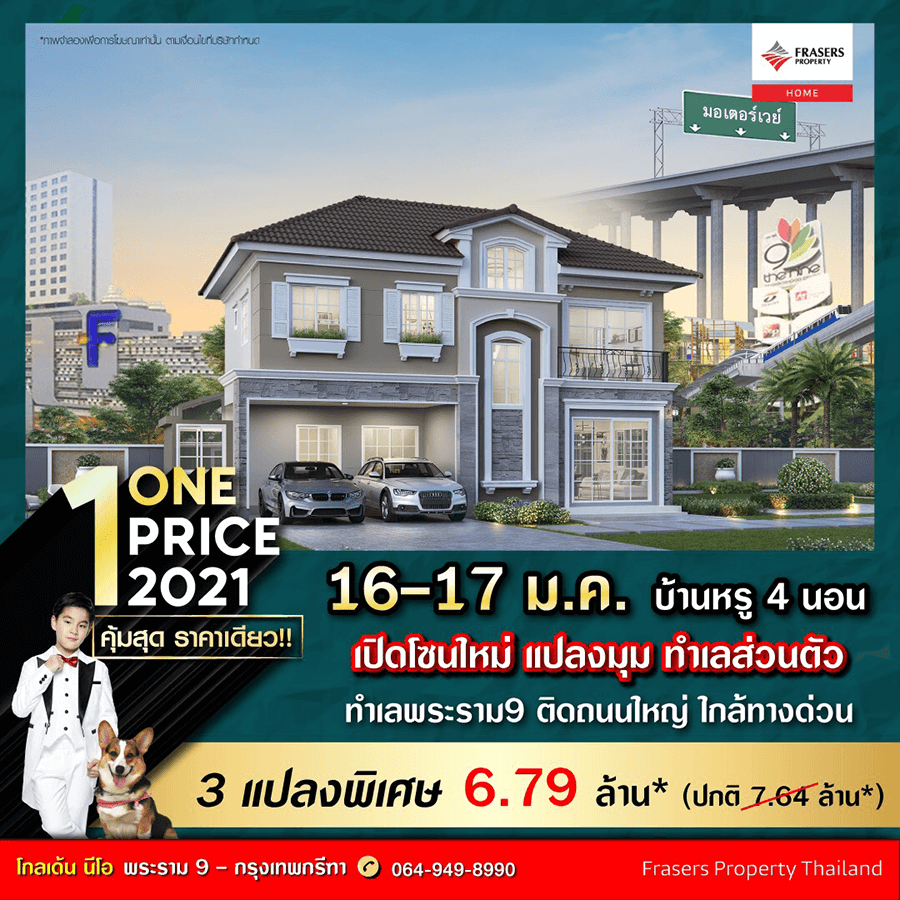 Promotion : 16 - 17 ม.ค. นี้ คุ้มที่สุด ราคาเดียว !! 3 แปลงพิเศษ ONE PRICE 2021เปิดโซนใหม่ แปลงมุม ทำเลส่วนตัว บ้านหรู ฟังก์ชั่นครบ ใหญ่จุใจ 4 นอน 4 น้ำ พร้อมห้องพักผ่อน + ห้องพระ ทำเลพระราม 9 ติดถนนใหญ่ ใกล้ทางด่วนเริ่ม 6.79 ล้าน*