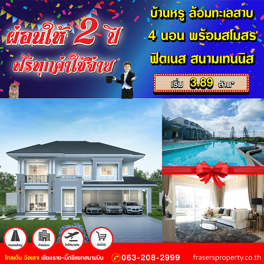 Promotion : วันที่ 1-31 ม.ค. 64 รับโปรสุดคุ้ม ฉลองปีใหม่ จัดหนัก ผ่อนให้ 2 ปี ฟรีทุกค่าใช้จ่าย กับที่สุดของโครงการ โกลเด้น เอ็มไพร์ เชียงราย อาณาจักรมหัศจรรย์เพื่อความสุขของทุกคน บ้านหรู ล้อมทะเลสาบ พร้อม สโมสร ฟิตเนส สนามเทนนิส และ สวนพักผ่อน ทำเลคุณภาพ ติดบิ๊กซีแยกสนามบิน เริ่ม 3.89 ล้าน*