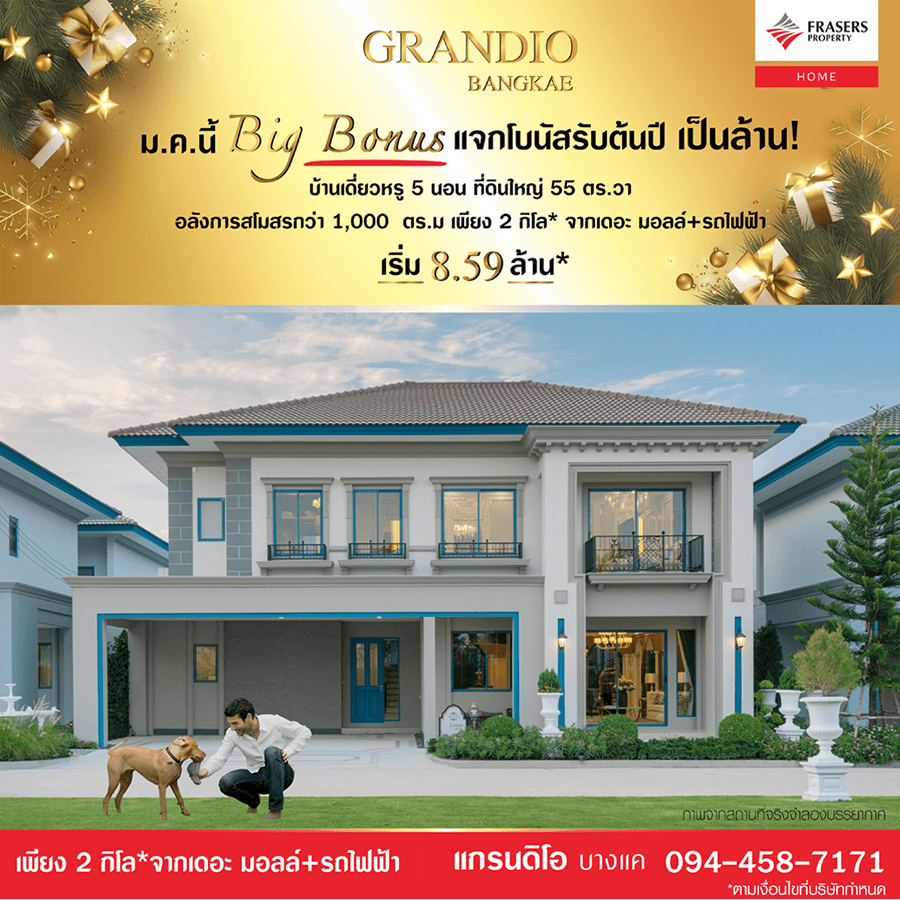 Promotion : วันที่ 1-31 ม.ค. 64 BIG BONUS ม.ค.นี้ มีเฮ มอบโปรพิเศษ แจกใหญ่ กว่า 300,000* #ห้ามพลาด เริ่มเพียง 2.49 ล้าน* ทาวน์โฮมหรู 4 นอน 3 น้ำ ฟังก์ชั่นครบครัน พร้อมครัวไทย+ห้องพระ อลังการสโมสร สไตล์อังกฤษ เดินทางสะดวก ใกล้รถไฟฟ้า