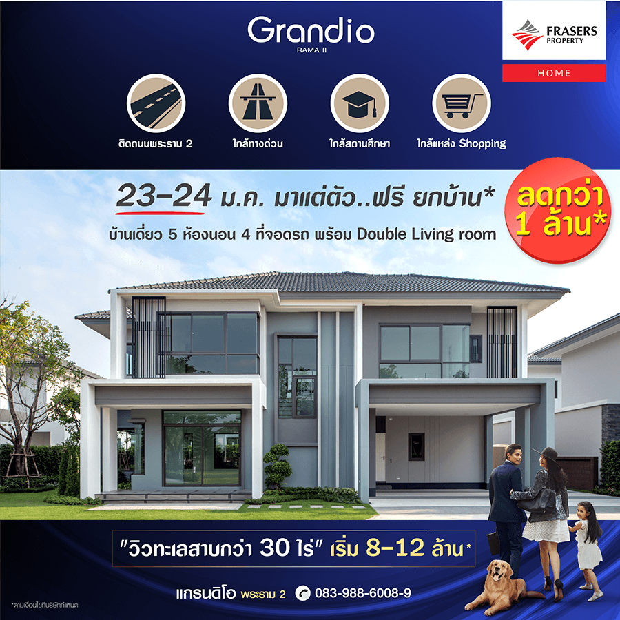 Promotion : 23-24 ม.ค. นี้ มาแต่ตัวฟรียกบ้าน* ลดกว่า 1,000,000 บาท* บ้านเดี่ยวสุดหรู 5 ห้องนอน 4 ที่จอดรถ พร้อม Double Living room ส่วนกลางสุดอลังการ วิวทะเลสาบกว่า 30 ไร่ คุ้มสุด! บนทำเลทอง ย่านพระราม 2 ติดถนนใหญ่ ใกล้ทางด่วน เริ่ม 8 - 12 ล้าน*
