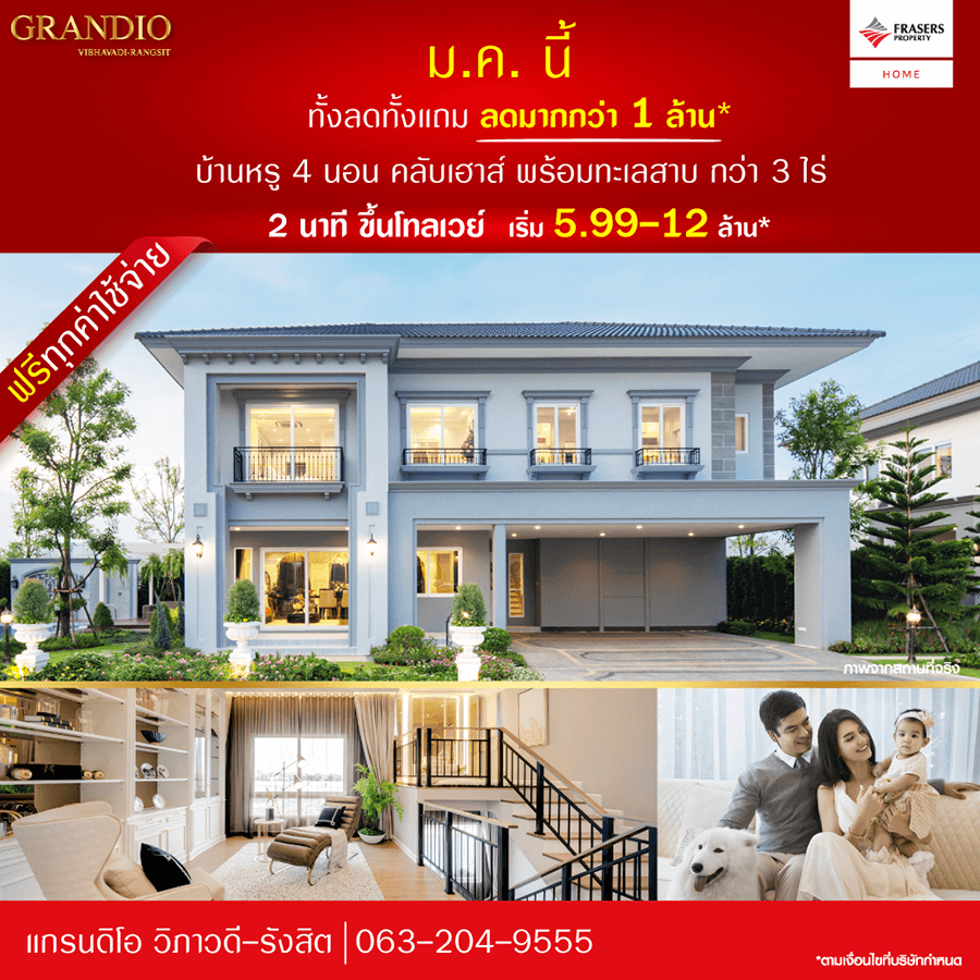 Promotion : ม.ค.นี้ ทั้งลดทั้งแถม ลด!! มากกว่า 1 ล้าน* พร้อมโปรแรง ฟรี!! ทุกค่าใช้จ่าย บ้านหรู 4 ห้องนอน คลับเฮ้าส์ พร้อมทะเลสาบกว่า 3 ไร่ บนทำเลศักยภาพ ย่านวิภาวดี-รังสิต เพียง 2 นาที ขึ้นโทลล์เวย์ฯ ติดถนนใหญ่ ใกล้ฟิวเจอร์ เริ่ม 5.99 -12 ล้าน*