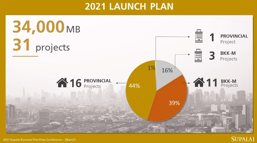 บริษัท ศุภาลัย จำกัด (มหาชน) เผยทิศทางการดำเนินธุรกิจ และกลยุทธ์สำคัญของบริษัทฯ ในปี 2564 ชูสถานะ ทางการเงินแข็งแกร่ง พร้อมก้าวไปข้างหน้า..เติบโตอย่างผู้นำ เตรียมเปิดโครงการใหม่ทั้งแนวราบ และคอนโดมิเนียมรวม 31 โครงการ ครอบคลุมทั้งกรุงเทพฯ ปริมณฑล และภูมิภาค รวมมูลค่า 34,000 ล้านบาท คาด ปี 2564 บริษัทฯ จะเติบโต ทางด้านรายได้ และกำไร แบบ New High