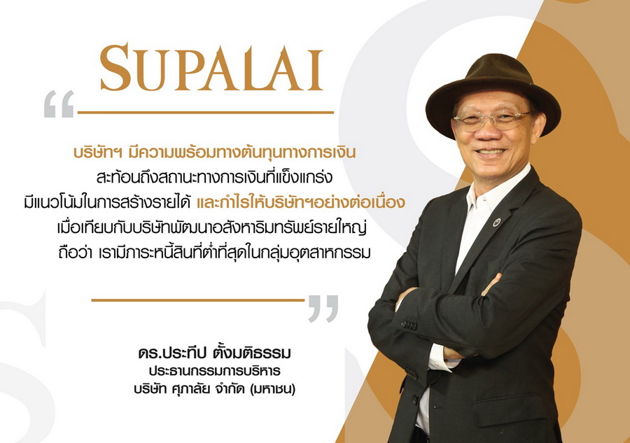 ดร.ประทีป ตั้งมติธรรม ประธานกรรมการบริหาร บริษัท ศุภาลัย จำกัด (มหาชน) เปิดเผยว่า ทิศทางสถานการณ์ตลาดอสังหาริมทรัพย์ของประเทศไทยปี 2564 คาดว่าจะมีแนวโน้มเติบโตขึ้นจากปี 2563 และจะกลับสู่ภาวะปกติในเวลาไม่นาน จากการปรับตัวเข้าสู่ยุค New Normal ในปีที่ผ่านมา ท่ามกลางวิกฤตโควิด-19 หลายบริษัทฯ ต้องปรับตัวอย่างรวดเร็ว และทันต่อสถานการณ์