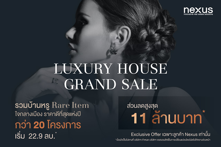 "ด้วยมองเห็นศักยภาพของตลาดกลุ่มนี้ เน็กซัสจึงจัดแคมเปญ "Luxury House Grand Sale" เพื่อรวบรวมบ้านหรู Rare Item โครงการคุณภาพใจกลางเมืองกว่า 20 โครงการ จากหลากหลายดีเวลลอปเปอร์ชั้นนำ มาไว้ที่เดียว ในราคาเริ่มต้น 22.9 - 70 ล้านบาท มาพร้อมส่วนลดสูงสุดถึง 11 ล้านบาท* และ Voucher เฟอร์นิเจอร์โดย Euro Creations จากอิตาลี รวมทั้งโปรโมชั่นพิเศษอีกมากมาย พิเศษเฉพาะลูกค้าเน็กซัส เท่านั้น!"