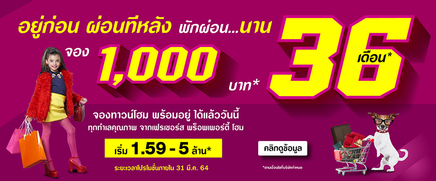 4. จองทาวน์โฮมเพียง 1,000 บาท* ได้อยู่ก่อนผ่อนทีหลังนาน 36 เดือน*