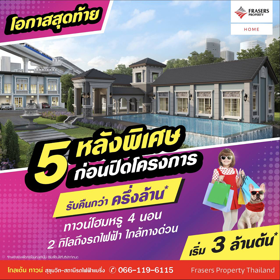 Promotion : วันนี้- 28 กุมภาพันธ์นี้เท่านั้น 5 หลังพิเศษก่อนปิดโครงการ รับคืนกว่า 300,000 บาท* เริ่มเพียง 2.09 ล้าน* ทาวน์โฮมใหญ่ 4 ห้องนอน 2 ที่จอดรถ ฟังก์ชั่นครบครัน ทำเลคุณภาพ ใกล้รถไฟฟ้า + ทางด่วน