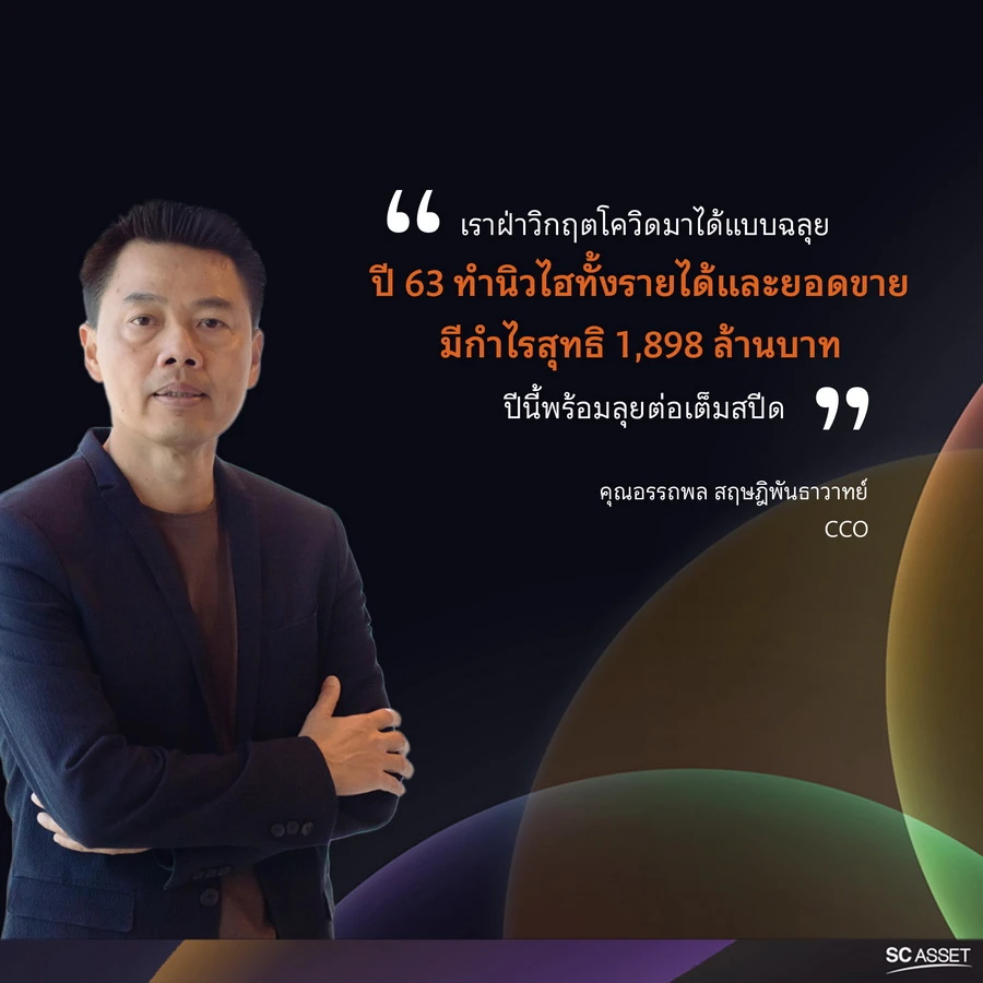 นายอรรถพล สฤษฎิพันธาวาทย์ ประธานเจ้าหน้าที่ด้านสนับสนุนองค์กร บริษัท เอสซี แอสเสท คอร์ปอเรชั่น จำกัด (มหาชน) หรือ SC ผู้พัฒนาสินค้าบริการคุณภาพมาตรฐานสูง ภายใต้มิชชั่น 'สร้างเช้าที่ดีให้ลูกค้าทุกคน' เปิดเผยถึงความสำเร็จของผลการดำเนินงานในปี 2563 ว่า "SC สอบผ่านปีโควิดฉลุยด้วยกลยุทธ์เชิงรุกที่ปรับตัวอย่างรวดเร็วและยืดหยุ่น และการรักษามาตรฐานคุณภาพสินค้าและบริการ โดยในปี 2563 ที่ผ่านมา บริษัทสามารถทำสถิติสูงสุดทั้งรายได้และยอดขาย